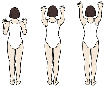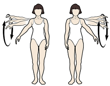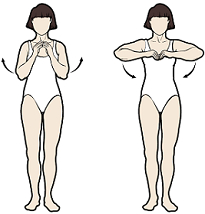This exercise will help you get back outward movement of your shoulder. You can do it while sitting or standing. Place your hands on your chest or collarbone. Raise your elbows out to the side. Raise them as high as you can, up to shoulder level . Slowly lower your elbows. Do this 10 times. Then, slowly lower your hands. If you feel discomfort while doing this exercise, hold your position and do the deep breathing exercise. If the discomfort passes, raise your elbows a little higher. If it doesn’t pass, don’t raise your elbows any higher. Finish the exercise raising your elbows only high enough to feel a gentle stretch and no discomfort.